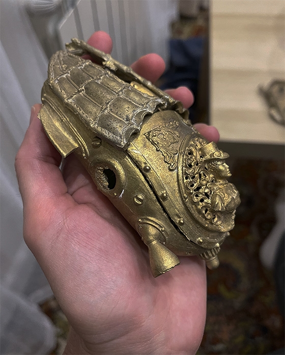 Несмотря на то, что я старался облегчить (даже барышня пустотелая), всё равно тяжеловатая, в игру не погоняешь. А главное- сопрягаемые детали надо лить в металлический кокиль под давлением в заводских условиях, а не на самодельном оборудовании.